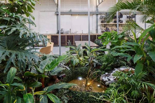 由荷蘭Space Encounters工作室為設(shè)計(jì)和制造人體工程學(xué)童車的Joolz公司,剛剛完成了位于阿姆斯特丹北部的一個(gè)1600㎡的辦公樓改造。這座玻璃屋原來(lái)作為舊倉(cāng)庫(kù),設(shè)計(jì)者首先去除底層室內(nèi)的所有墻體,利用高聳的種滿植物的玻璃屋將整個(gè)空間分成兩個(gè)長(zhǎng)廊似的辦公室,玻璃屋一直連到屋頂,與天窗結(jié)合在一起。