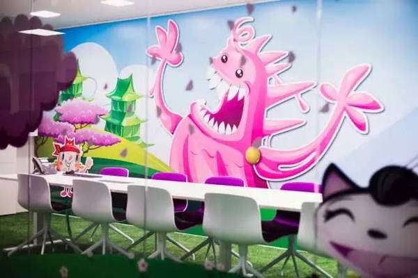游戲開發(fā)商國王(“糖果粉碎傳奇”的創(chuàng)造者)聯(lián)系設(shè)計師開發(fā)他們的新辦公室概念,其結(jié)果是一個色彩鮮艷的辦公室。