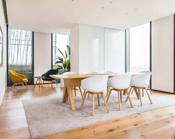 每天,人們都會在辦公室中呆很久,所以設(shè)計師希望創(chuàng)造一個舒適而又智慧的場所。設(shè)計師為天花上的燈加上了一層反射膜,這樣整個天花都能發(fā)出柔和的漫反射光。這是一個充滿創(chuàng)新而又微妙的設(shè)計,連接室內(nèi)外。諸如用戶自己設(shè)計的地毯和藝術(shù)品這類的細節(jié),也顯示出外灘SOHO的空間精神,同時也給這個開放大空間以豪華而又親密之感。