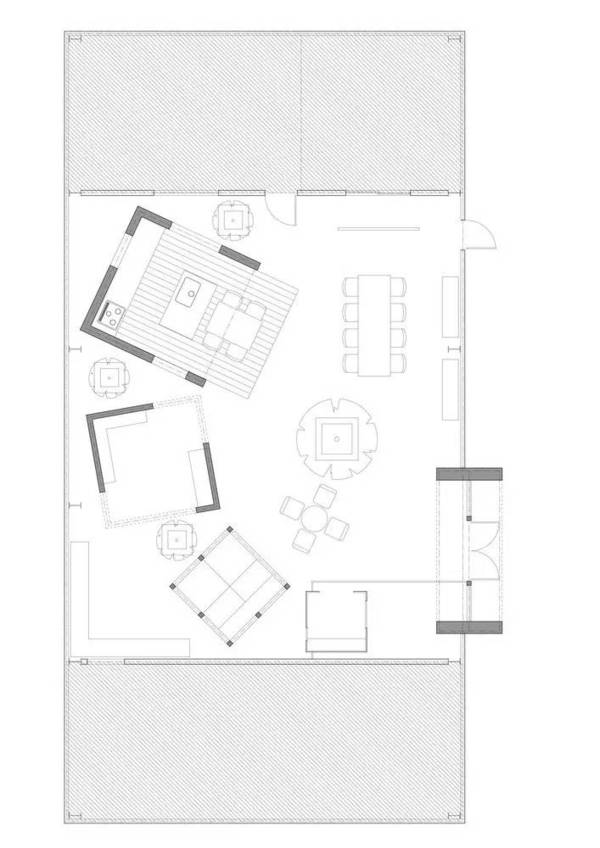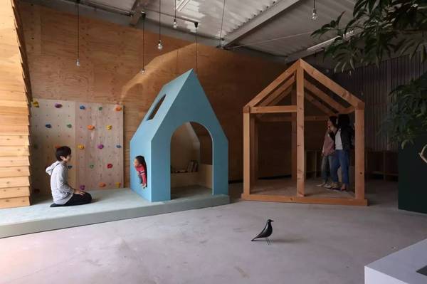 由ALTS Design Office設(shè)計的位于日本滋賀縣的Omihachiman新工作室,業(yè)主希望可以滿足不同的群體使用,同時尋找一個能夠令他們自由談話的工作室。設(shè)計者為室內(nèi)創(chuàng)建了四種“房子形狀”的位置,通過不同尺度的模塊形狀,適應(yīng)不同人群的社交空間。