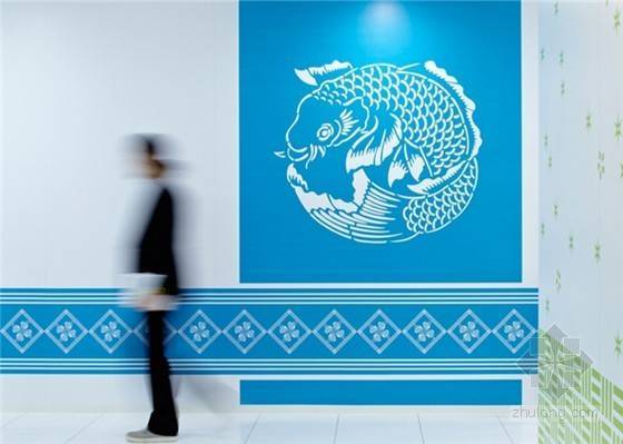 鯉魚、龜甲、青海波,種種元素都被毫不猶豫地拿來作為辦公室軟裝修的“工具”。澄凈的背景墻,再加上分隔空間的同時使人仿若置身于居酒屋的暖簾,都給人一種超脫物外的審美感受。置身此間,你會聯想到什么呢?是海風拂面的清涼?親近自然的愉悅?還是一期一會的禪意?