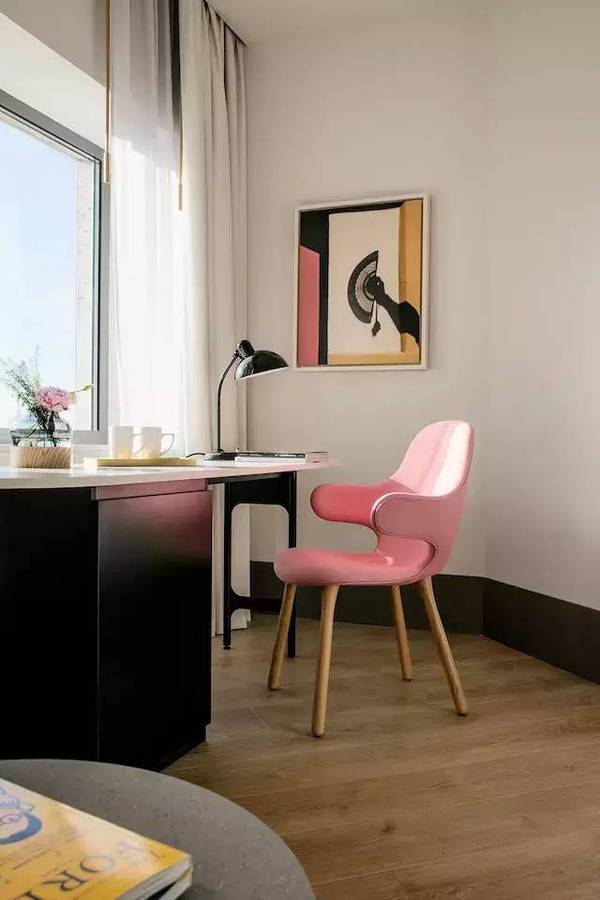 當然,除了性價比,這間休閑旅館的空間設計更是值得一說。負責這里空間設計的,是我們曾詳細報道過的西班牙創(chuàng)意咨詢公司 Masquespacio。這個以色彩設計見長的公司,這一次也把他們對色彩的想象力與把控力用在了瓦倫西亞休閑旅館。