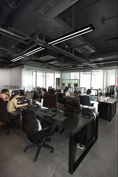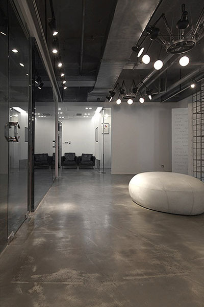 辦公隔斷獨(dú)具個(gè)性,鏤空的設(shè)計(jì)讓視線變得模糊又不至于封閉整個(gè)空間;地板仿佛是粗糙的水泥地板,事實(shí)上這種樸素的設(shè)計(jì)卻是出于裝修風(fēng)格的要求。