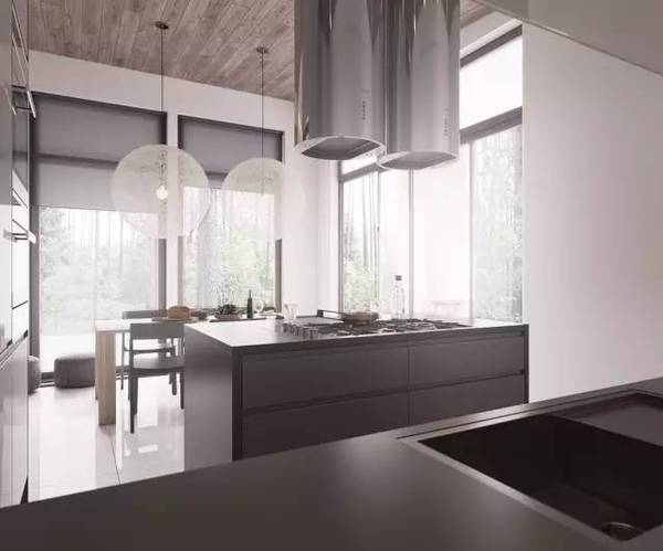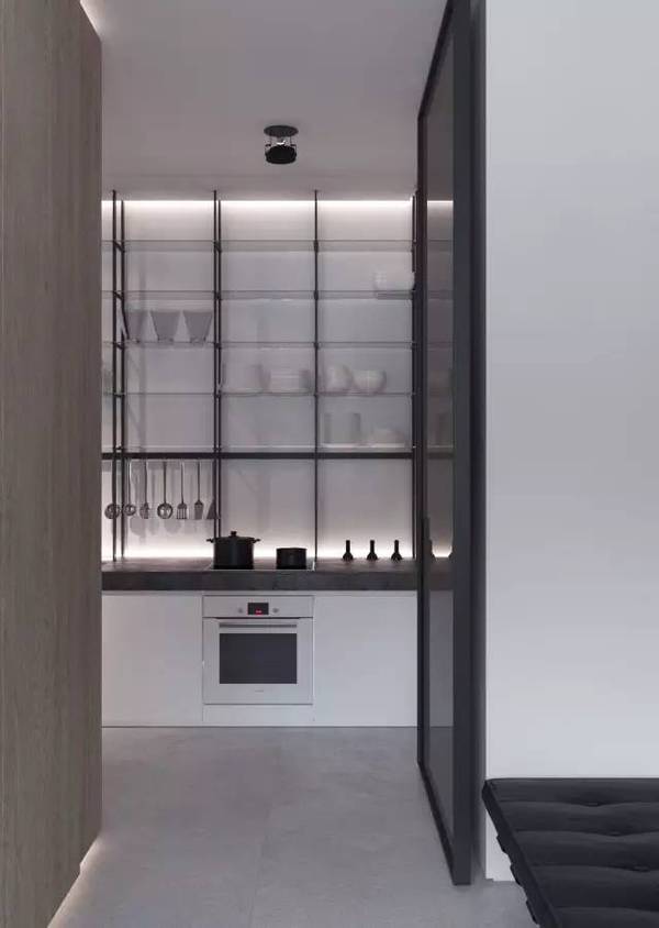 簡潔利落的廚房,表面沒有多余的裝飾,但金屬感的設(shè)計(jì)酷勁兒十足,在材質(zhì)的沖撞中凸顯質(zhì)感。