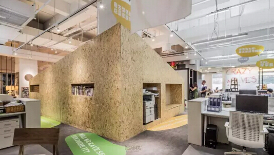 在這里同事與部門領(lǐng)導(dǎo)都是在同一個(gè)空間里工作,人與人之間沒有層級(jí)之分,營(yíng)造出一個(gè)平等的交流空間,而這些都是以無邊界組織為原型打造出來的辦公環(huán)境。