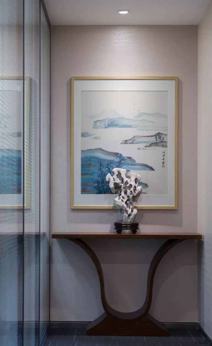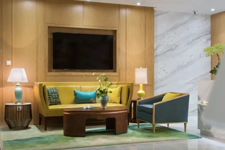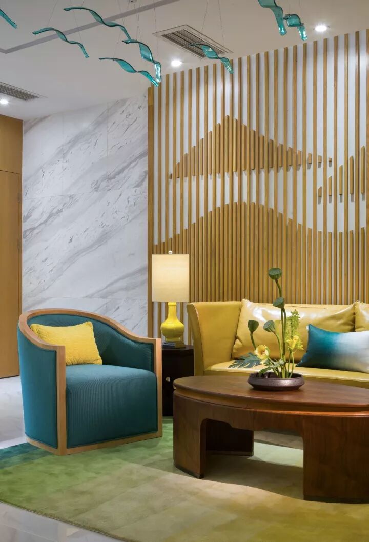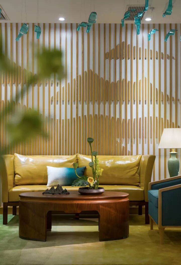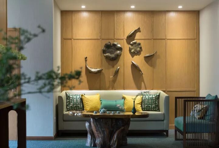 選用可中可西的木飾面造型為主造型,在重點區(qū)域反復使用,點綴山的造型,使空間對稱中有變化,簡潔中有豐富。