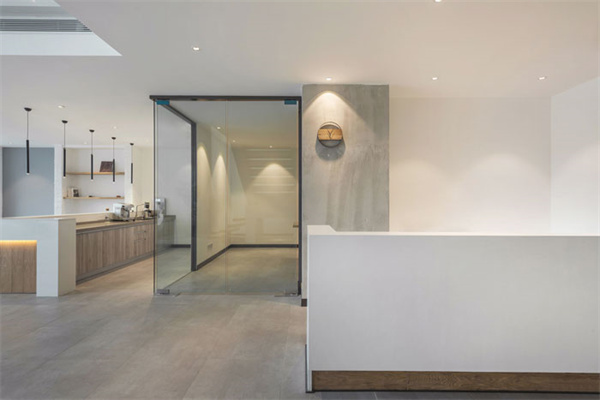 辦公室裝修設(shè)計采用全天候辦公的設(shè)計理念,辦公場所能隨著時間變化而將環(huán)境進(jìn)行相應(yīng)變化,為員工提供更加自由輕松的辦公氛圍。門廳區(qū)域摒棄傳統(tǒng)冷冰冰的接待形式,由吧臺、茶歇區(qū)、健康辦公區(qū)、討論區(qū)等功能組合而成,把互聯(lián)網(wǎng)開放性思維植入到日常辦公生活中。同時利用健康跑道地毯將整個空間串聯(lián)起來,讓空間更加具有活力和生氣。
